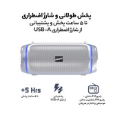 با یک بار شارژ کامل، میتوانید تا ۶ ساعت از پخش موسیقی بدون وقفه لذت ببرید که برای سفر و استفاده در فضای باز بسیار ایدهآل است.