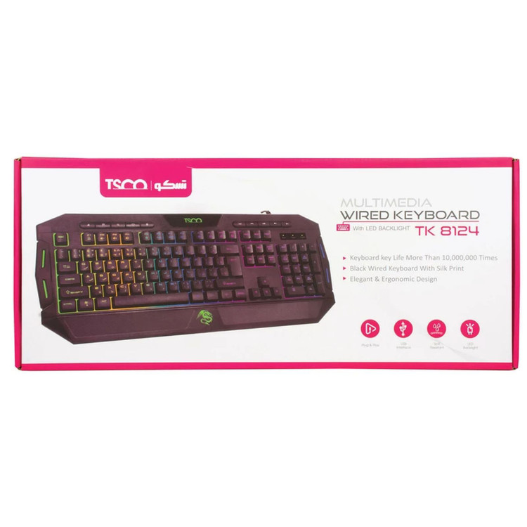 کیبورد گیمینگ تسکو مدل TK 8124، سوییچ ممبران، Full-Size، نورپردازی RGB LED