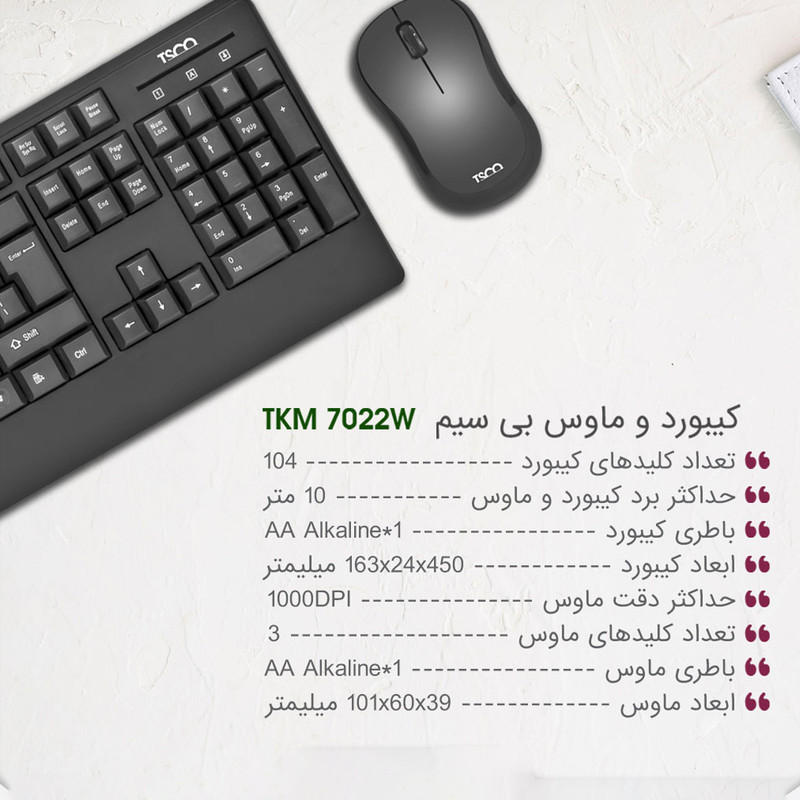 کیبورد و ماوس تسکو مدل TKM 7022W