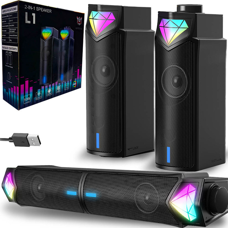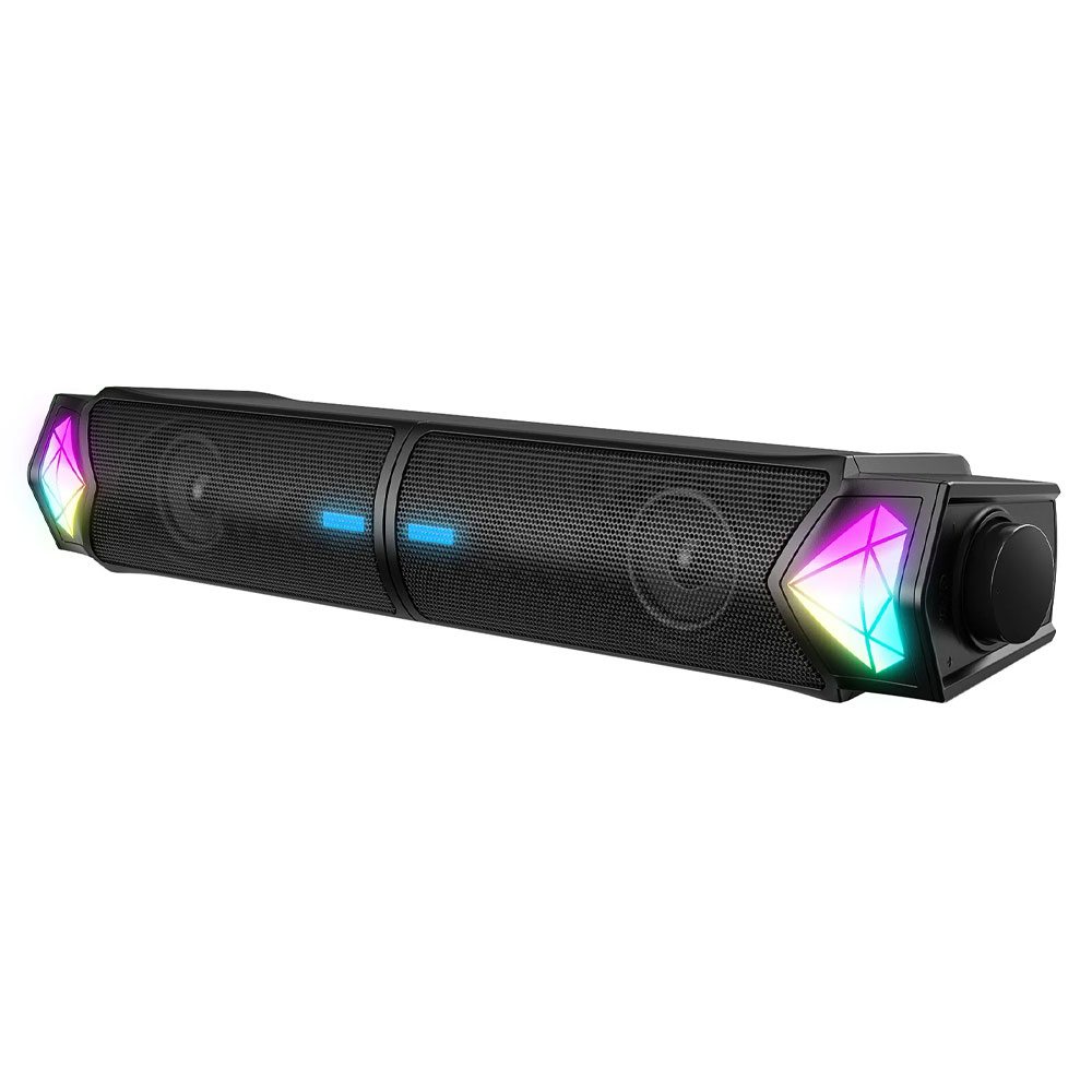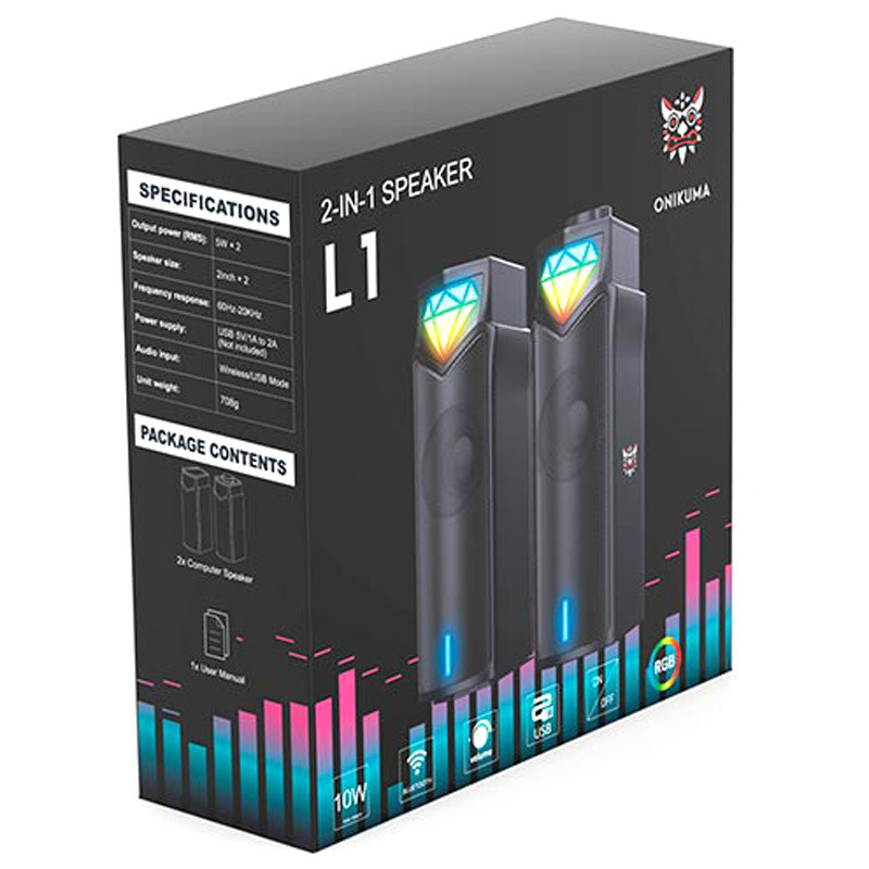 اسپیکر اونیکوما مدل L1 یک اسپیکر دسکتاپ بلوتوث و کابلی با کیفیت و دارای RGB است که میتواند صدای استریو با کیفیت بالا را تولید کند. این اسپیکر دارای نور RGB با مودهای رنگی مختلف و مود صدا میباشد .طراحی عمودی و افقی شیک و گیمینگ این محصول با کیفیت با هر دکوراسیونی سازگار است. این محصول از رابطهای اتصال USB و Bluetooth استفاده میکند و به شما این امکان را میدهد که از طریق بلوتوث و یا کابل usb به هر سیستمی متصل شوید، اونیکوما L1 دارای کلید چند حالته برای تنظیم صدا و تغییر نوع اتصال و RGB است. اسپیکر پیشرو میتواند فرکانسهای پایین تا 60 هرتز و بالا تا 20 کیلوهرتز را پخش کند و توان خروجی هر کدام از بلندگوهای آن 5 وات است. اسپیکر اونیکوما گزینهای مناسب برای گوش دادن به موسیقی، تماشای فیلم و بازی کردن است.
