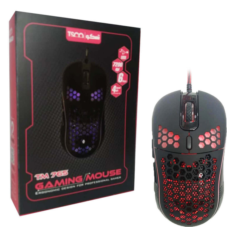 ماوس مخصوص بازی تسکو مدل TM 765GA یکی از تولیدات برند تسکو است. این برند ایرانی معروف محصولات متنوعی از جمله لوازم جانبی کامپیوتر را تولید میکند. بیش از دو دهه از آغاز فعالیتهای برند تسکو میگذرد و در این مدت محصولات این برند توانستهاند نظر بخش قابلتوجهی از مشتریان را به دست بیاورد. این مدل ماوس برند تسکو هم به دلیل قیمت مناسب و ویژگیهای خوبی که دارد، جزو یکی از محصولات پرفروش این شرکت محسوب میشود. ماوس مذکور توسط رابط USB به کامپیوتر و لپتاپ متصل شده و با سیم کار میکند. محدوده دقت این ماوس حدود 3200 است. به همین دلیل برای انجام کارهای روزمره با کامپیوتر انتخاب بسیار خوبی به نظر میرسد. همچنین در ساخت این مدل ماوس از حسگر اپتیکال استفاده شده است. ماوسهایی با این ویژگی به دلیل حساسیت زیادی که نسبت به حرکت دارند از دقت بالایی برخوردار هستند. از دیگر ویژگیهای این مدل ماوس میتوان به طراحی بسیار خاص و منحصربهفرد و وزن مناسبش اشاره کرد.