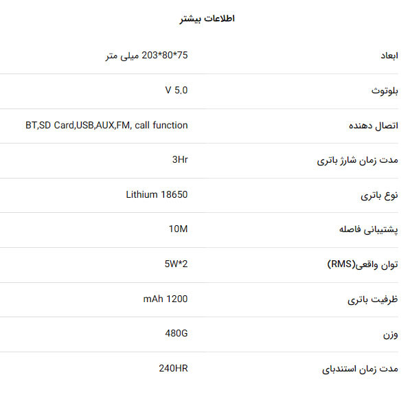 اسپیکر مدل TS 23004 دارای یک باتری لیتیومی 1200 میلی آمپری است که در مدت زمان 3 ساعت بطور کامل شارژ میشود.