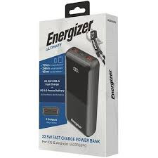 پاوربانک (PowerBank) مدل UE20069PQ از سری پاوربانکهای 20000 میلیآمپر شرکت انرجایزر و با بکارگیری فناوری فست شارژ به منظور شارژرسانی سریع به تلفنهای هوشمند با سیستم عامل اندورید و iOS و تبلتها تولید شده است.پاوربانک UE20069PQ دارای 3 پورت میباشد که شامل یک پورت مشترک ورودی/خروجی تایپ سی و 2 پورت خروجی USB-A است. پورتهای ورودی به همراه نرخ ولتاژ و جریان آن عبارتند از: پورت Type-C ورودی: 5V/3A – 9V/2A نرخ ولتاژ و جریان پورتهای خروجی این کالا نیز عبارتند از: پورت USB-A1/A2 خروجی: 5V/3A – 9V/2A – 10V/2.25A – 12V/1.5A پورت Type-C خروجی: 5V/2A – 9V/2.22A – 12V/1.5A این پاوربانک با حداکثر توان خروجی 22.5 وات دارای نمایشگر دیجیتال جهت نمایش میزان شارژ است. همچنین این محصول دارای وزن 420 گرم است که در کلاس وزنی پاوربانکهای سبک وزن قرار دارد. ابعاد این شارژر همراه نیز 144 × 69 × 30 میلیمتر است.این پاوربانک در رنگهای سفید و مشکی با ظرفیت 20000 میلی آمپر دارای باتری لیتیوم پلیمری است. همچنین این کالا از رویه ضد خش و جنس بدنه آن نیز پلاستیک ABS است که مهمترین خاصیت آن ضد اشتعال بودن کالاست. از اقلام همراه این پاوربانک فست شارژ نیز میتوان به دفترچه راهنما و کابل شارژر اشاره کرد.