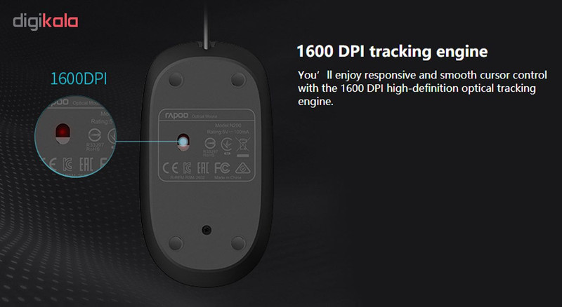 ماوس Rapoo N200، یک ماوس سه کلیده است که برای کارهای روزانهی خانگی و اداری مناسب است و دارای دقت 1600dpi است که از یک حسگر اپتیکال بهره میبرد. این ماوس از تمام نسخههای سیستم عامل ویندوز از جملهویندوز 10، ویندوز 8.1، ویندوز 8 و ویندوز 7 و XP پشتیبانی میکند و میتواند روی کامپیوترها لپتاپ و دسکتاپ قدیمی هم از این ماوس استفاده کنید. Rapoo N200 به گونهای ساخته شدهاست که میتوان هم با دست چپ و هم با دست راست با آن کار کرد. این ماوس زیر دست، کارکرد راحتی دارد و برای کاربرش مایهی ناراحتی نخواهد شد.قیمت بسیار مناسب و عملکرد بیدردسر از فاکتورهای تاثیرگذار در انتخاب چنین ماوسی است.