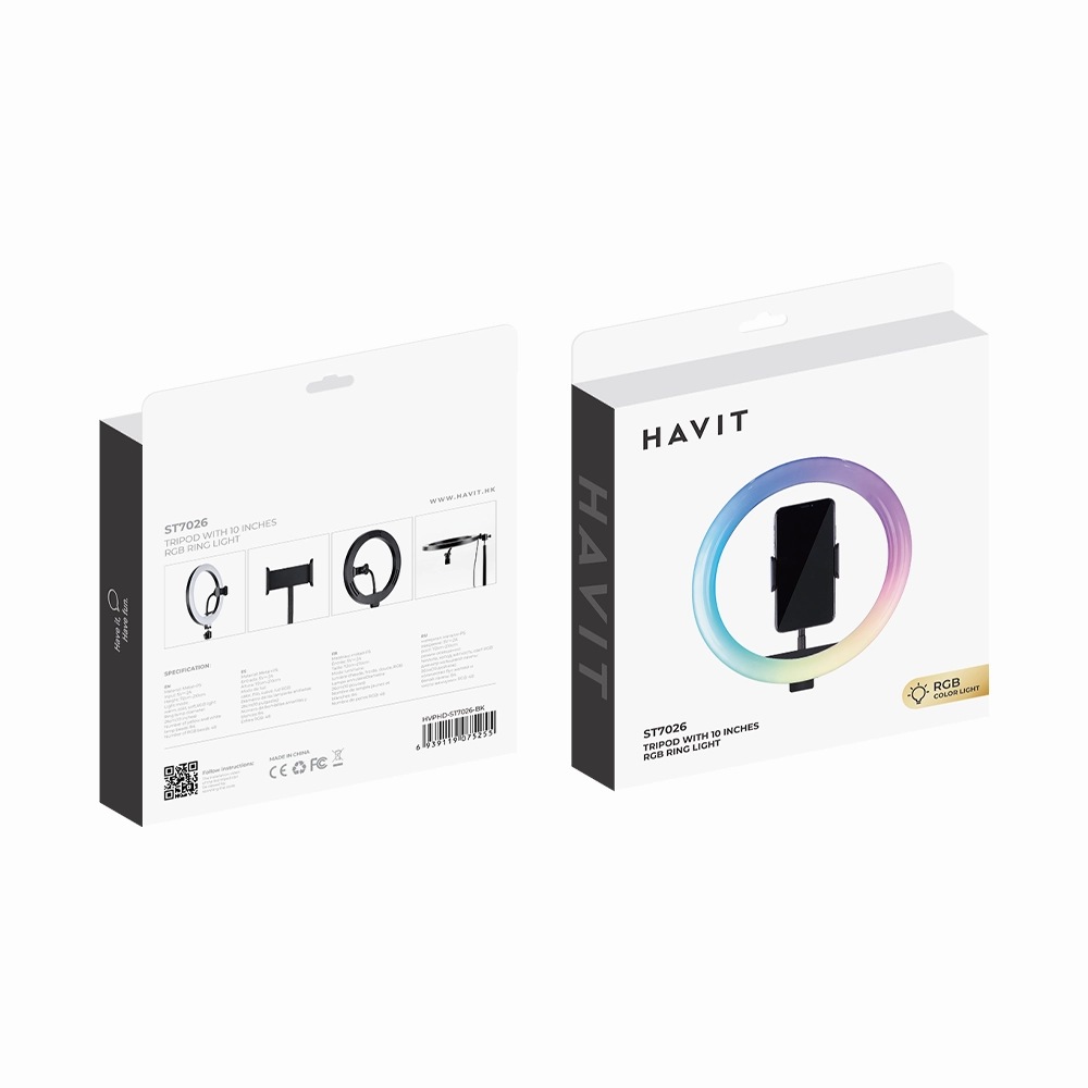 رینگ لایت هویت ST7026 یک گزینه عالی برای فیلمبرداری، عکاسی، لایو استریم و آرایش حرفهای است. نورپردازی یکنواخت، تنظیم شدت و رنگ نور، و طراحی جمعوجور، آن را به یکی از بهترین انتخابها برای تولیدکنندگان محتوا تبدیل کرده است.